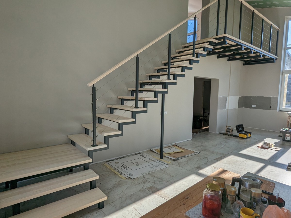 Металлический каркас из профильной трубы. Лестница с деревянными ступенями на каркасе из металла