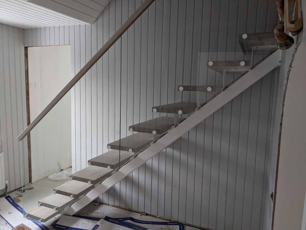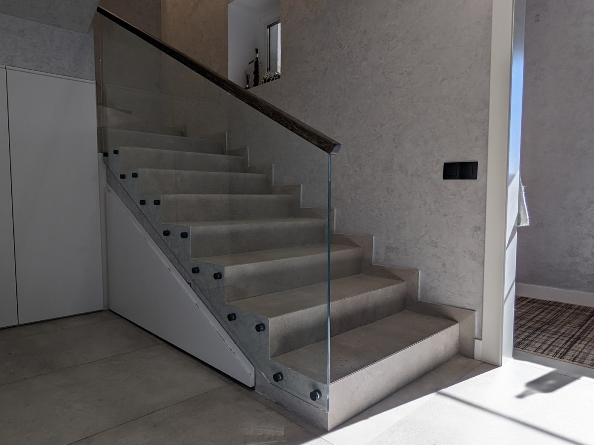 - Установка ограждения из осветленного стекла триплекса на лестницу заказчика в г. Гродно
