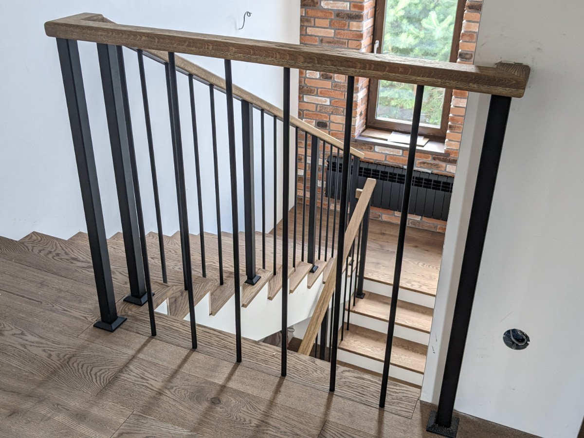 Монтаж ограждения серии Вертикаль на монолитную лестницу