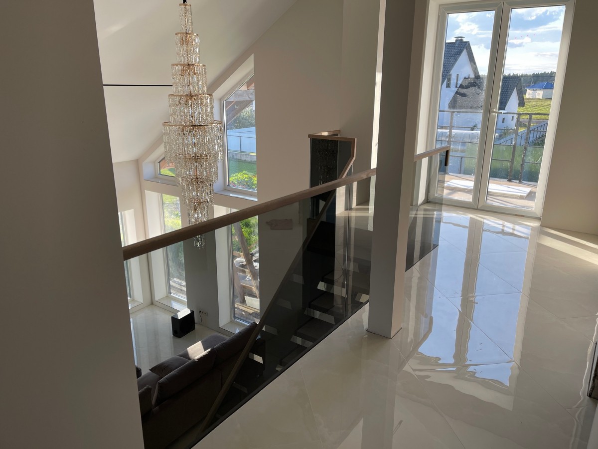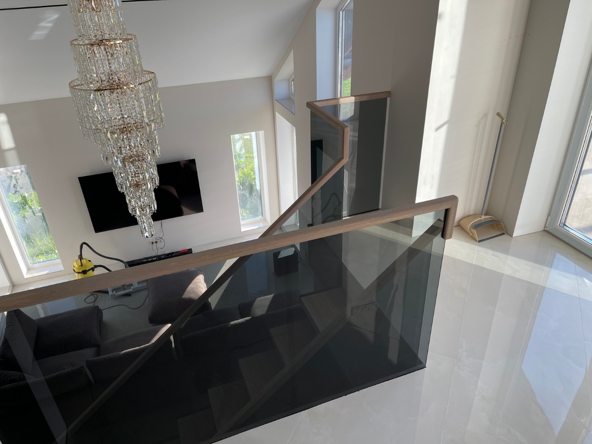 - Безопасность: высота ограждения 950–1000 мм, стекло класса безопасного разрушения, поручни выдерживают нормативные нагрузки.