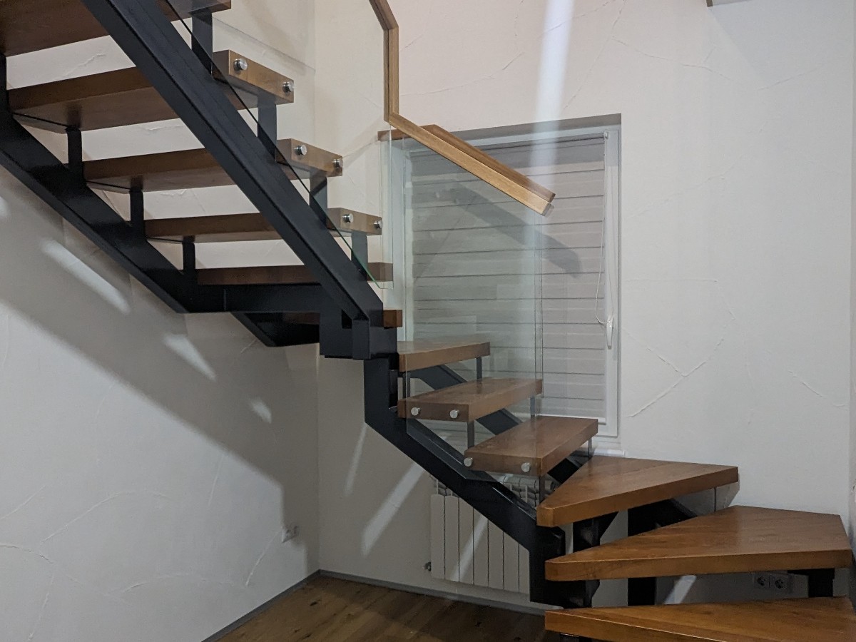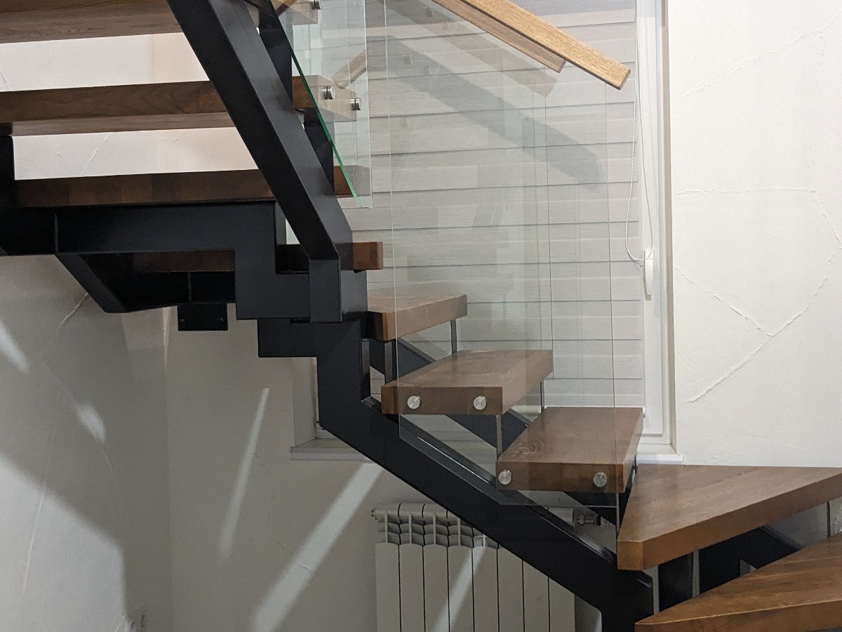 В наших проектах стекло можно закреплять по ситуации: к металлическому каркасу, непосредственно к ступеням или через промежуточные стойки; в зависимости от дизайна применяются надёжные крепления из нержавеющей стали.